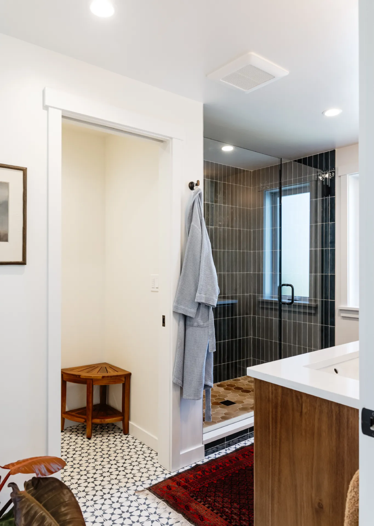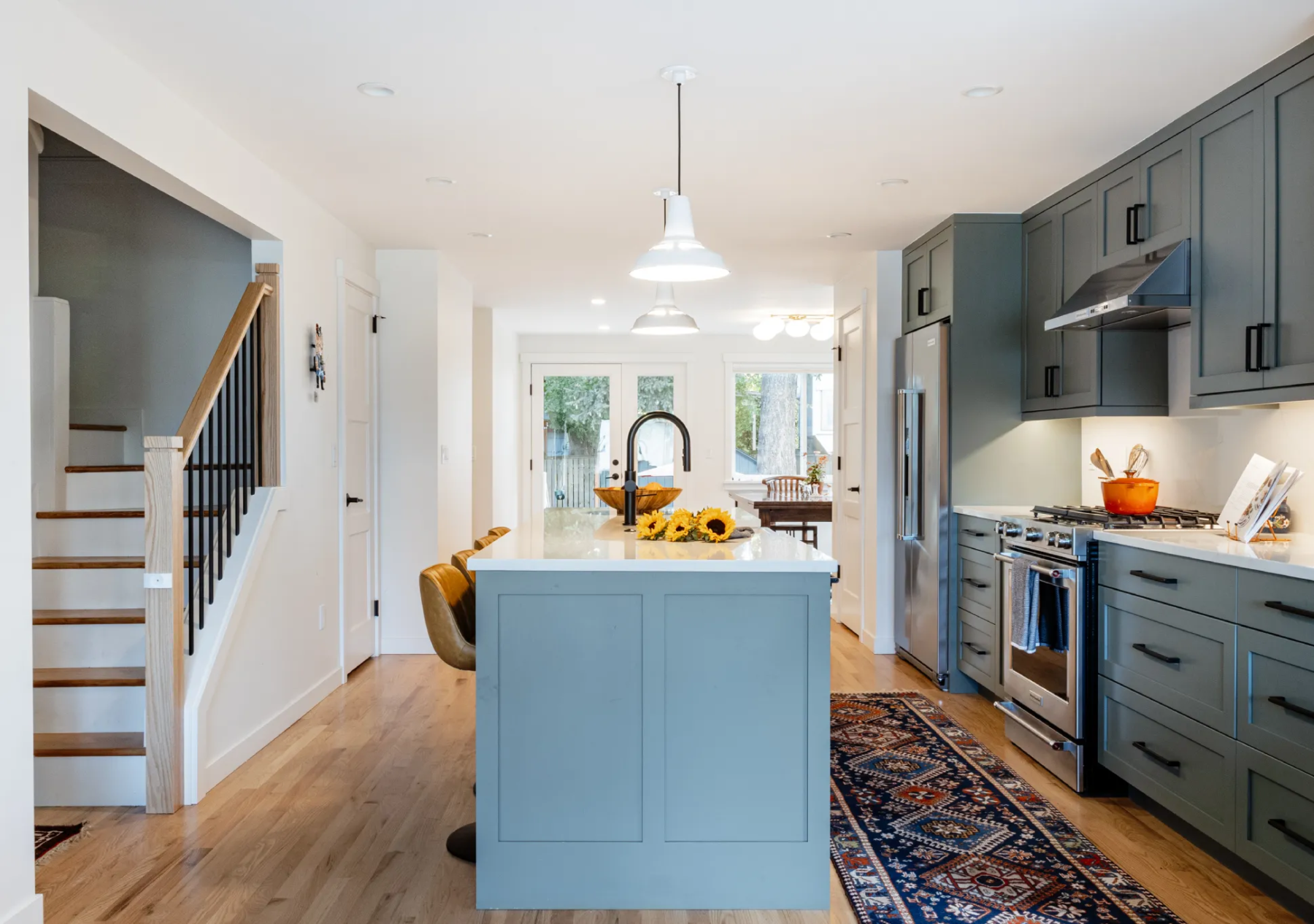 This renovation reimagines a 1940s home to support a growing family while honoring its original charm. The design opens the floor plan and relocates the kitchen to the center, creating clear sightlines from the front entry through to the backyard. A new rear addition provides a primary suite with direct garden access, and reworked living areas enhance indoor-outdoor flow. The result is a warm, functional home that blends historic character with modern family living, filled with light and connection.